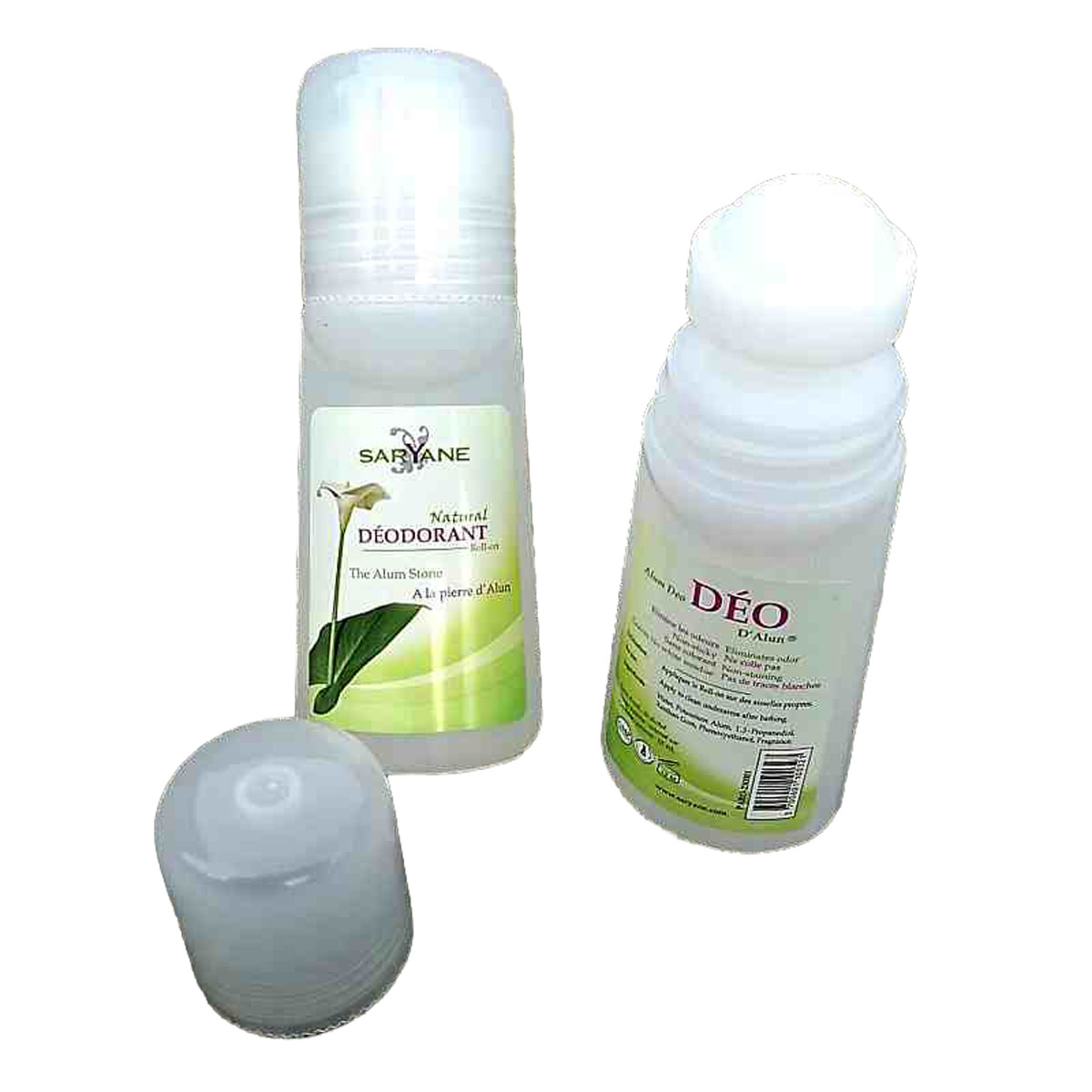Roll-on de pierre d’alun (Potassium Alum). Solution liquide sans sels d’aluminium synthétiques.
